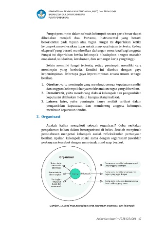 Gambar 1.8 Mind map perbedaan serta kesamaan organisasi dan kelompok