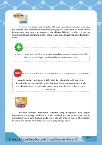 lebih akurat. Pada pH-meter terdapat elektroda yang bisa dimasukkan ke dalam sebuah