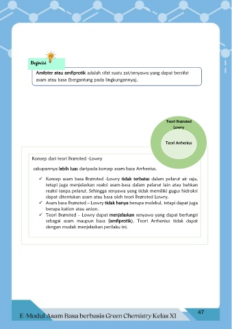 sebagai asam maupun basa (amfiprotik). Teori Arrhenius tidak dapat