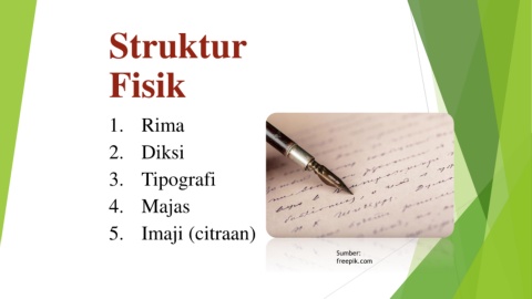 Struktur Fisik 1. Rima 2. Diksi 3. Tipografi 4. Majas 5. Imaji (citraan) Sumber: freepik.com