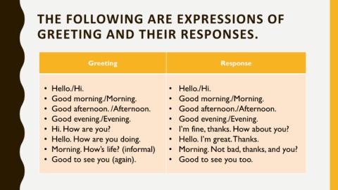 GREETING AND THEIR RESPONSES.