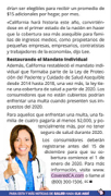 Además, California restableció el mandato indi- vidual que formaba parte de la Ley de Protec- ción del Paciente y Cuidado de Salud Asequible desde 2014 hasta 2018, una vez más, la ley tie- ne una cobertura de salud a partir de 2020. Los consumidores que no están cubiertos podrían enfrentar una multa cuando presenten sus im- puestos del 2020.