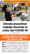 empleo por la crisis del coronavirus. Sin em- bargo, en medio de la pandemia existe una demanda de personas en primera línea, parti-
