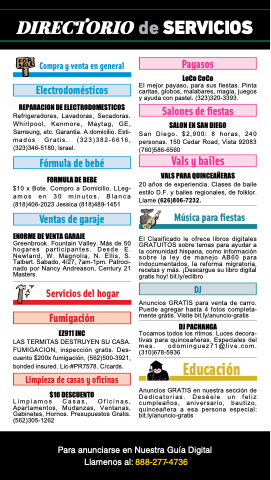 LAS TERMITAS DESTRUYEN SU CASA. FUMIGACION, inspección gratis. Des- cuento $200x fumigación, (562)500-3921, bonded insured. Lic-#PR7578. C/cards.