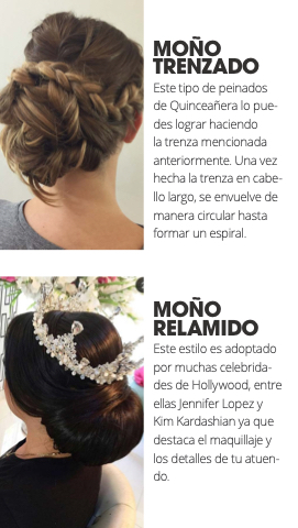 MOÑO TRENZADO Este tipo de peinados de Quinceañera lo pue- des lograr haciendo