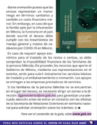 diante cremación puesto que las cenizas representan un menor riesgo en términos sanitarios y también un costo financiero me- nor. Sin embargo, en caso de que la familia opte por la inhumación en México, la funeraria en el país donde ocurrió el deceso debe cumplir con los lineamientos de manejo general y masivo de ca- dáveres por COVID-19 en México.