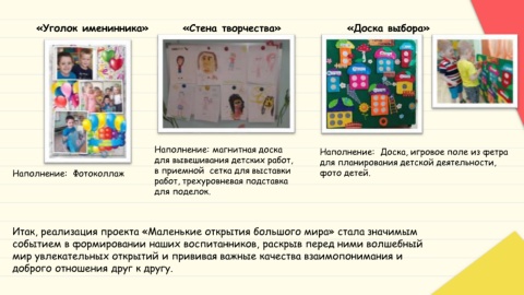Итак, реализация проекта «Маленькие открытия большого мира» стала значимым