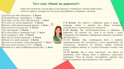 11.Какая ты у меня умница! – 2 балла. 11-12 баллов. Вам необходимо быть к ребенку