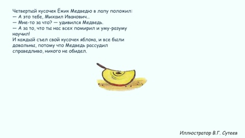Четвертый кусочек Ёжик Медведю в лапу положил: