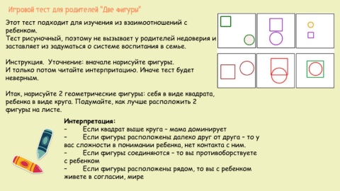 Тест рисуночный, поэтому не вызывает у родителей недоверия и
