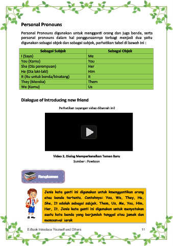 Personal Pronouns digunakan untuk mengganti orang dan juga benda, serta