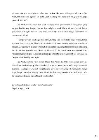 apa-apa. Hanya mata mu, Mami yang selalu ku ingat, mata kosong, mata yang mau cerita