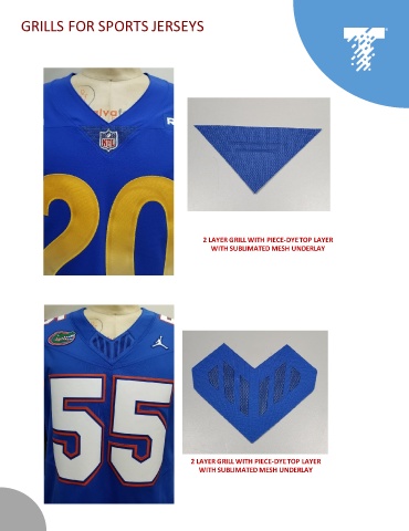GRILLS FOR SPORTS JERSEYS 2 LAYER GRILL WITH PIECE-DYE TOP LAYER WITH SUBLIMATED MESH UNDERLAY 2 LAYER GRILL WITH PIECE-DYE TOP LAYER WITH SUBLIMATED MESH UNDERLAY