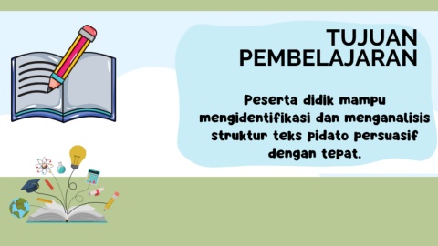 TUJUAN PEMBELAJARAN Peserta didik mampu mengidentifikasi dan menganalisis struktur teks pidato persuasif dengan tepat.