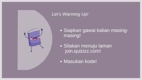 Let’s Warming Up! Siapkan gawai kalian masing- masing! Silakan menuju laman join.quizizz.com! Masukan kode!