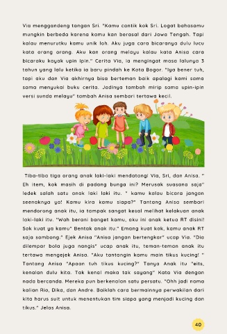 Tiba-tiba tiga orang anak laki-laki mendatangi Via, Sri, dan Anisa. "