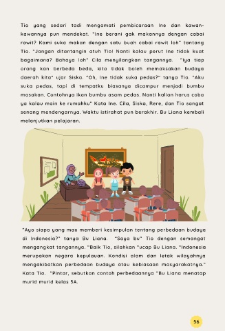 daerah kita” ujar Siska. “Oh, Ine tidak suka pedas?” tanya Tio. “Aku
