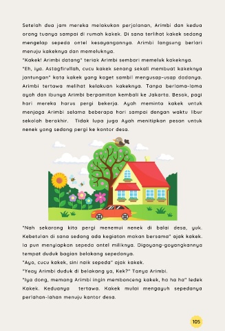orang tuanya sampai di rumah kakek. Di sana terlihat kakek sedang