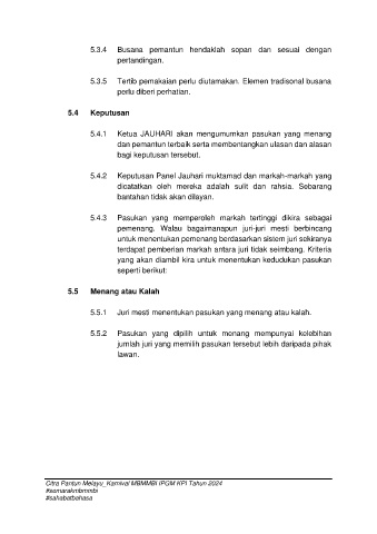 5.4.1 Ketua JAUHARI akan mengumumkan pasukan yang menang