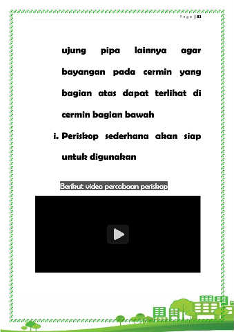 P a g e | 81 ujung pipa lainnya agar bayangan pada cermin yang bagian atas dapat terlihat di cermin bagian bawah i. Periskop sederhana akan siap untuk digunakan