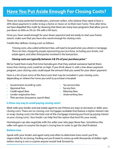 Closing costs are typically between 2 & 5% of your purchase price.”