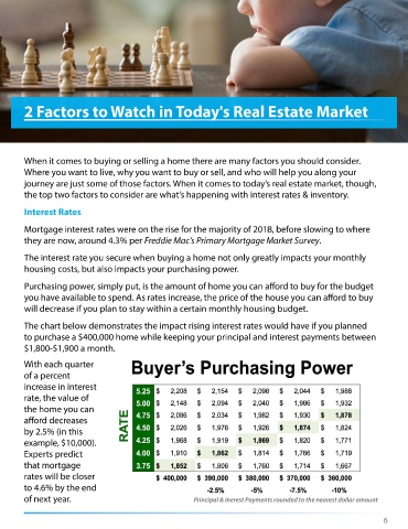 Purchasing power, simply put, is the amount of home you can afford to buy for the budget