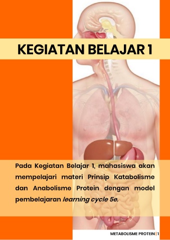 Pada Kegiatan Belajar 1, mahasiswa akan mempelajari materi Prinsip Katabolisme dan Anabolisme Protein dengan model pembelajaran learning cycle 5e. METABOLISME PROTEIN | 1