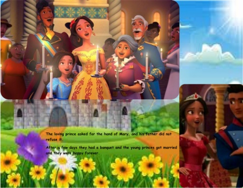 The loving prince asked for the hand of Mary, and his father did not refuse it. After a few days they had a banquet and the young princes got married and they were happy forever.