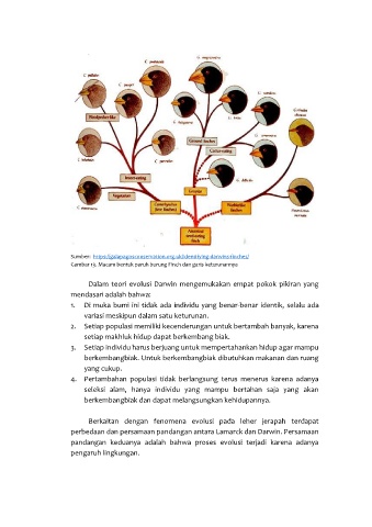 Gambar 13. Macam bentuk paruh burung Finch dan garis keturunannya