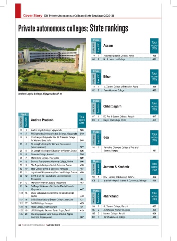 Cover Story EW Private Autonomous Colleges State Rankings 2020-21
