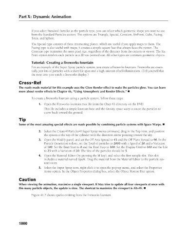 For an example of the Super Spray particle system, you create a fireworks fountain. Fireworks are essen-