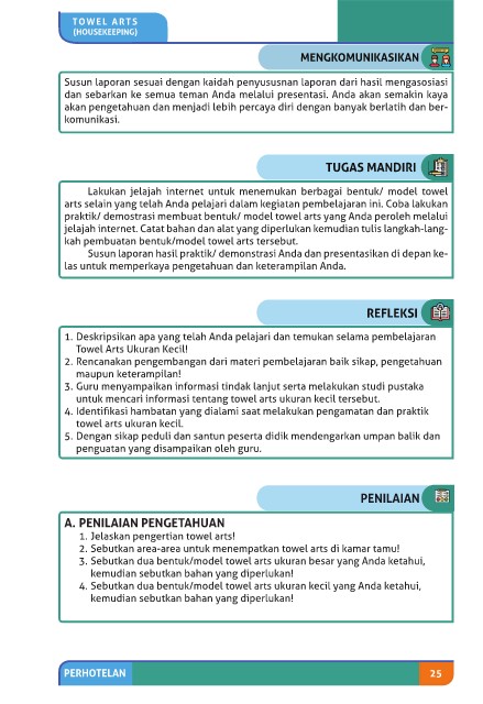 praktik/ demostrasi membuat bentuk/ model towel arts yang Anda peroleh melalui
