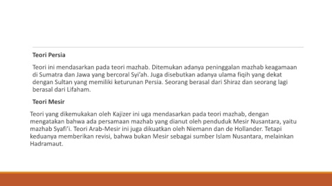 mazhab Syafi’i. Teori Arab-Mesir ini juga dikuatkan oleh Niemann dan de Hollander. Tetapi
