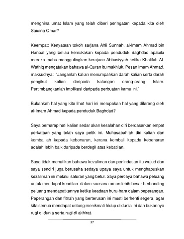 Wathiq mengatakan bahawa al-Quran itu makhluk. Pesan Imam Ahmad,