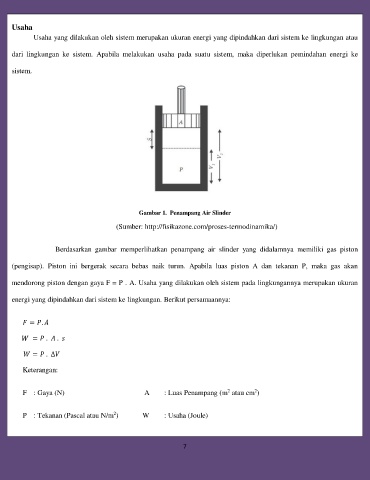 mendorong piston dengan gaya F = P . A. Usaha yang dilakukan oleh sistem pada lingkungannya merupakan ukuran