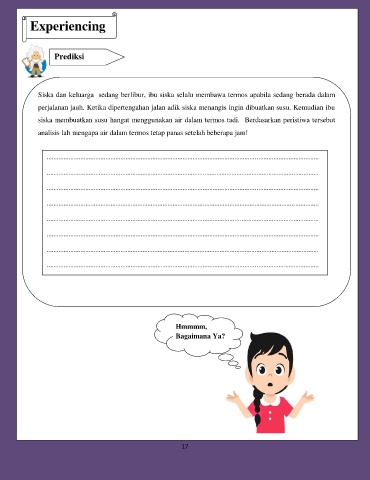 siska membuatkan susu hangat menggunakan air dalam termos tadi. Berdasarkan peristiwa tersebut