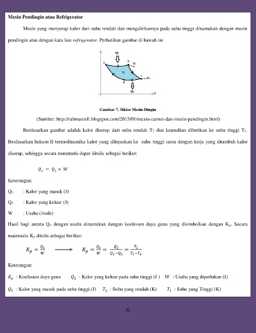 : Koefesien daya guna : Kalor yang keluar pada suhu tinggi (J ) : Usaha yang diperlukan (J)