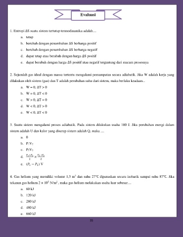 1. Entropi ∆S suatu sistem tertutup termodinamika adalah....