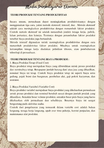 ·TEORI PRODUKSI TENTANG BIAYA PRODUKSI :
