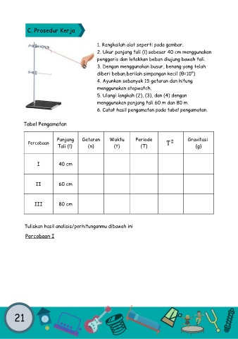 2. Ukur panjang tali (l) sebesar 40 cm menggunakan