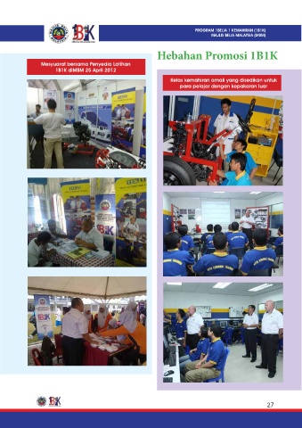 PROGRAM 1BELIA 1 KEMAHIRAN (1B1K) MAJLIS BELIA MALAYSIA (MBM) Mesyuarat bersama Penyedia Latihan 1B1K diMBM 25 April 2012 Kelas kemahiran amali yang disedikan untuk para pelajar dengan kepakaran luar 27