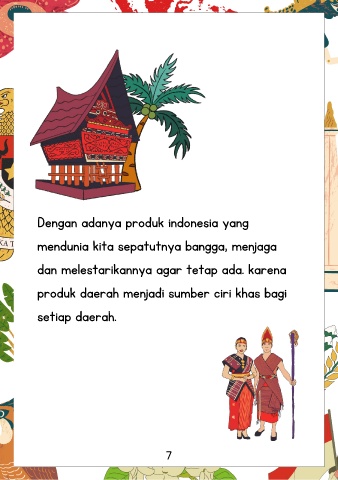 Dengan adanya produk indonesia yang mendunia kita sepatutnya bangga, menjaga dan melestarikannya agar tetap ada. karena produk daerah menjadi sumber ciri khas bagi setiap daerah. 7