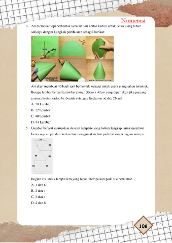 4. Ari membuat topi berbentuk kerucut dari kertas karton untuk acara ulang tahun