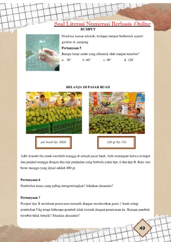 Adik disuruh ibu untuk membeli mangga di sebuah pasar buah. Adik mendapati bahwa terdapat