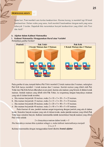 sebanyak 2 kardus. Dapatkah kita menentukan banyak handsanitizer yang dibeli oleh Toni