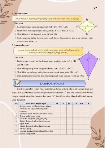 1) Keempat sisinya sama panjang, yaitu AB = BC = CD = AD. A E C