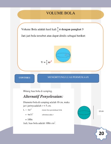 Volume Bola adalah hasil kali π dengan pangkat 3