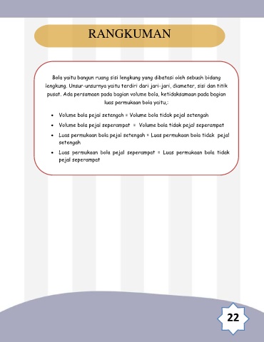 Bola yaitu bangun ruang sisi lengkung yang dibatasi oleh sebuah bidang
