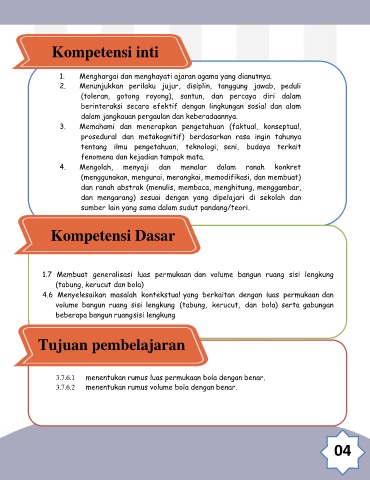 3.7.6.2 menentukan rumus volume bola dengan benar.