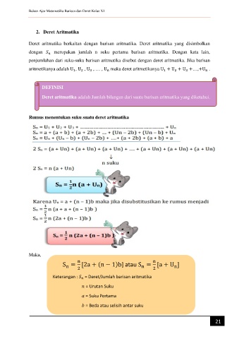 aritmetikanya adalah U , U , U , … , U maka deret aritmetikanya U + U + U +…,+U .